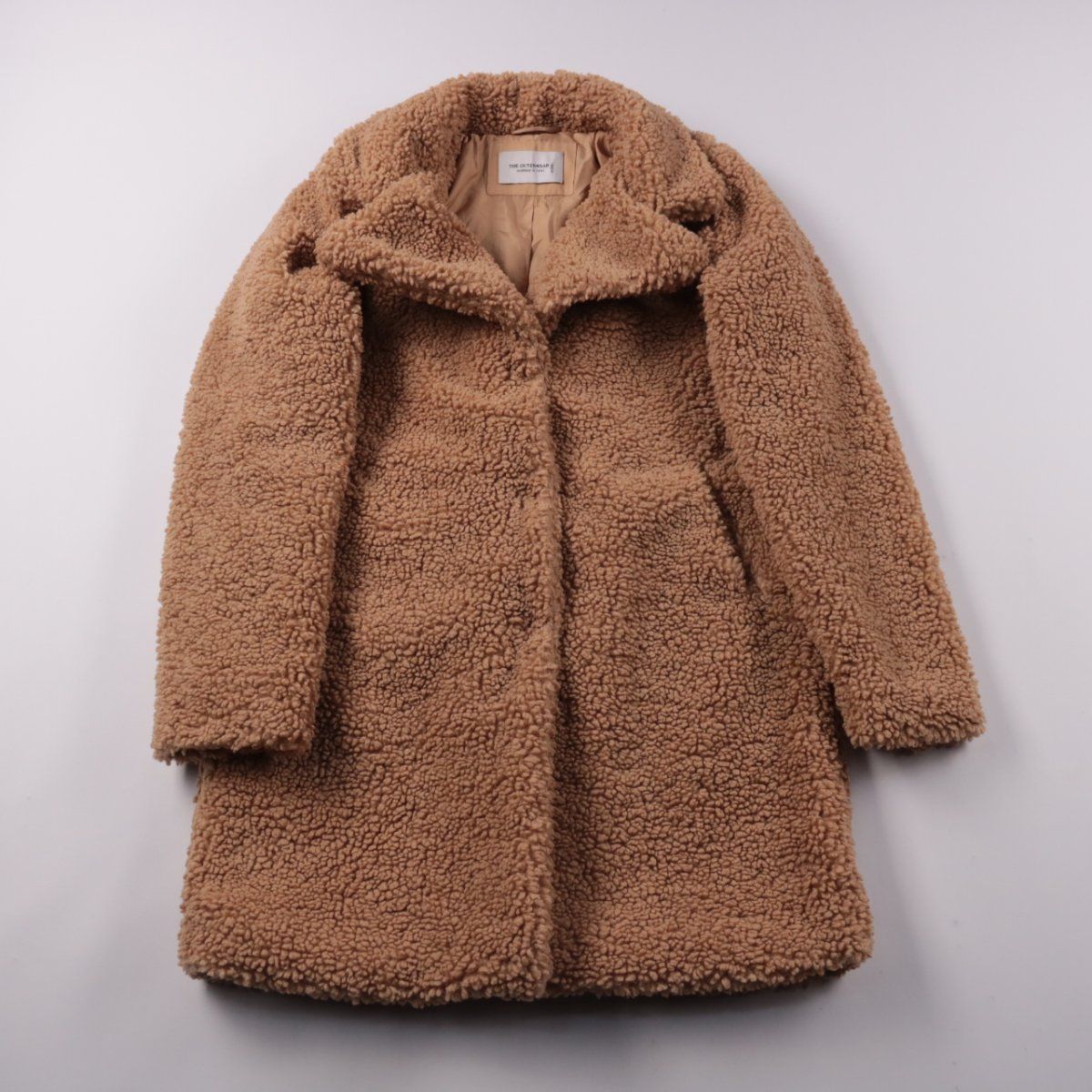 Шуба C&A из искусственного меха тедди в бежевом цвете, с объёмным воротником и застёжкой на пуговицы. Подойдёт для повседневных городских образов в прохладную погоду осенью и весной. Мягкая фактура хорошо удерживает тепло и комфортна в носке.