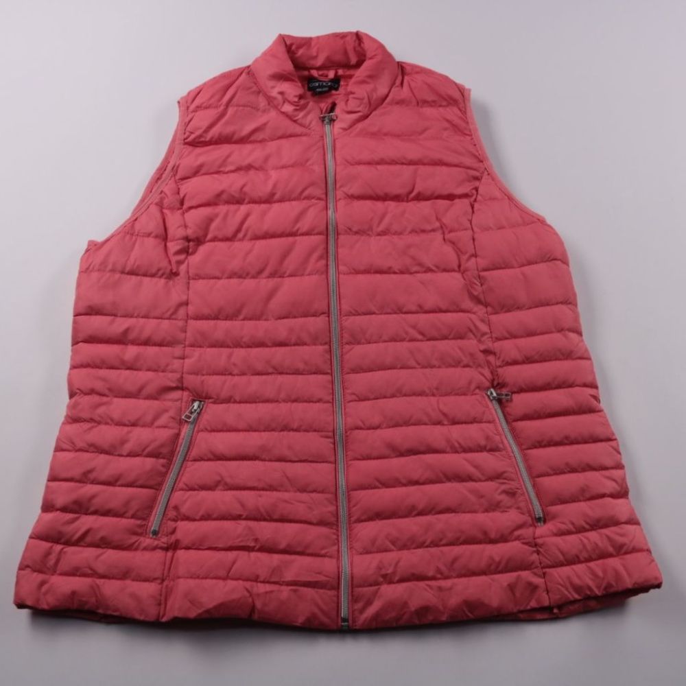 Стёганый утеплённый жилет Esmara в розово-красном цвете на молнии, с воротником-стойкой и двумя карманами на молниях. Подойдёт для прогулок и поездок в прохладную погоду, удобно носить поверх худи или свитера. Лёгкий и компактный, быстро сохнет и не ст...