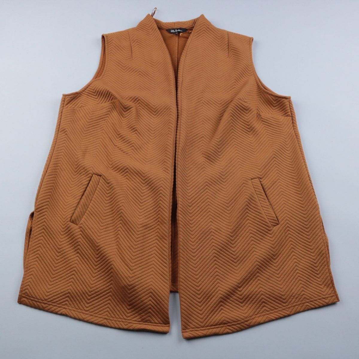 Стёганый женский жилет Ulla Popken в коричневом (карамельном) оттенке, без рукавов и с V-образным вырезом. Подойдёт для многослойных образов в прохладную погоду — поверх лонгслива, свитера или худи. Практичный плюс: есть боковые карманы и материал неприхотлив в уходе.