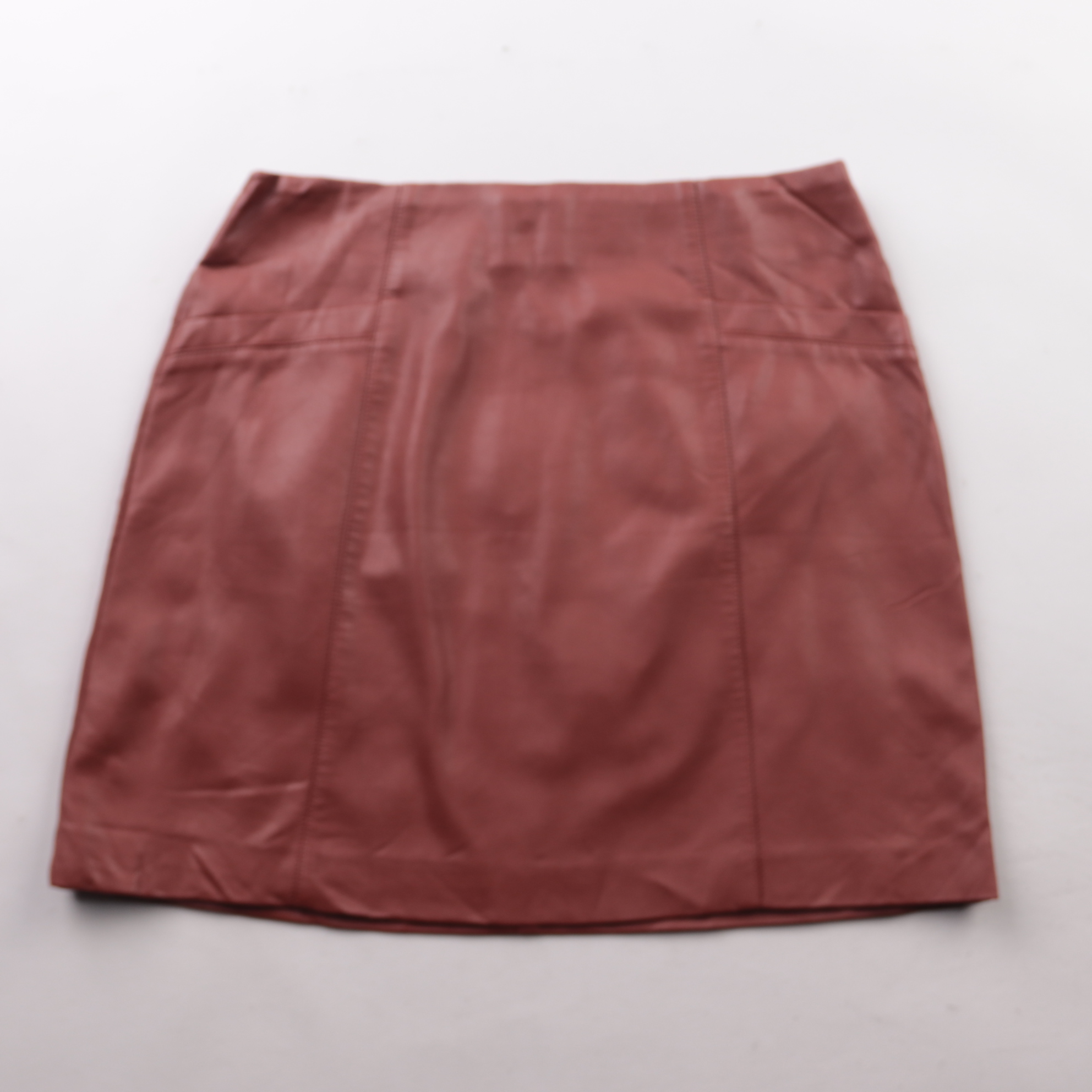 Юбка New Look из экокожи бордового цвета, прямого мини‑кроя. Подойдёт для повседневных и вечерних образов с ботильонами или кедами. Практичное преимущество — материал легко протирается и не требует сложного ухода.