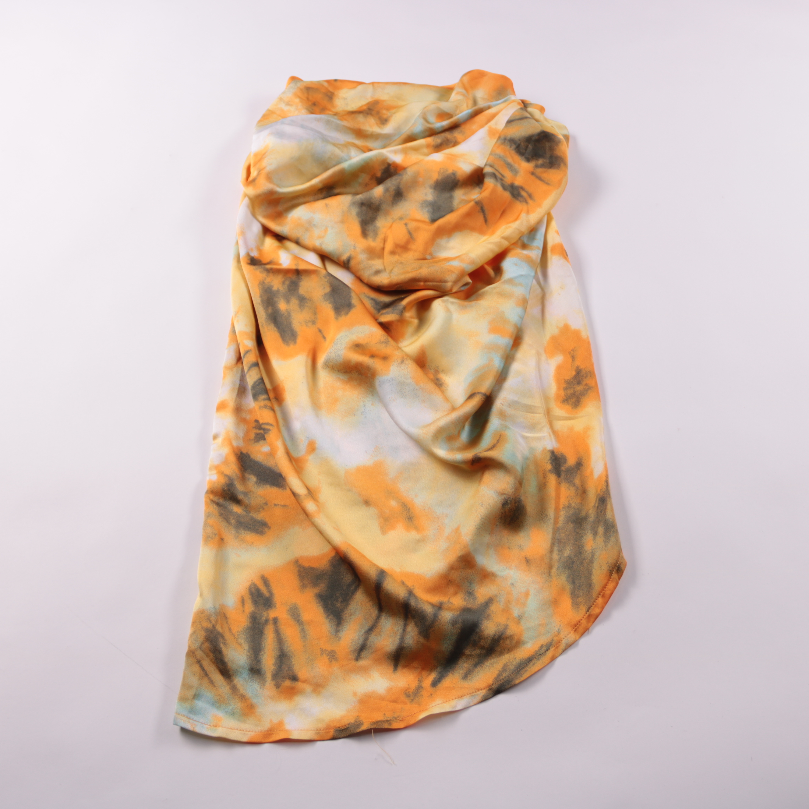 Платок PrettyLittleThing с абстрактным принтом в тёплых оранжево-серых оттенках. Подойдёт для повседневных образов и как акцент к однотонному пальто или жакету. Лёгкая ткань удобно драпируется и занимает мало места в сумке.