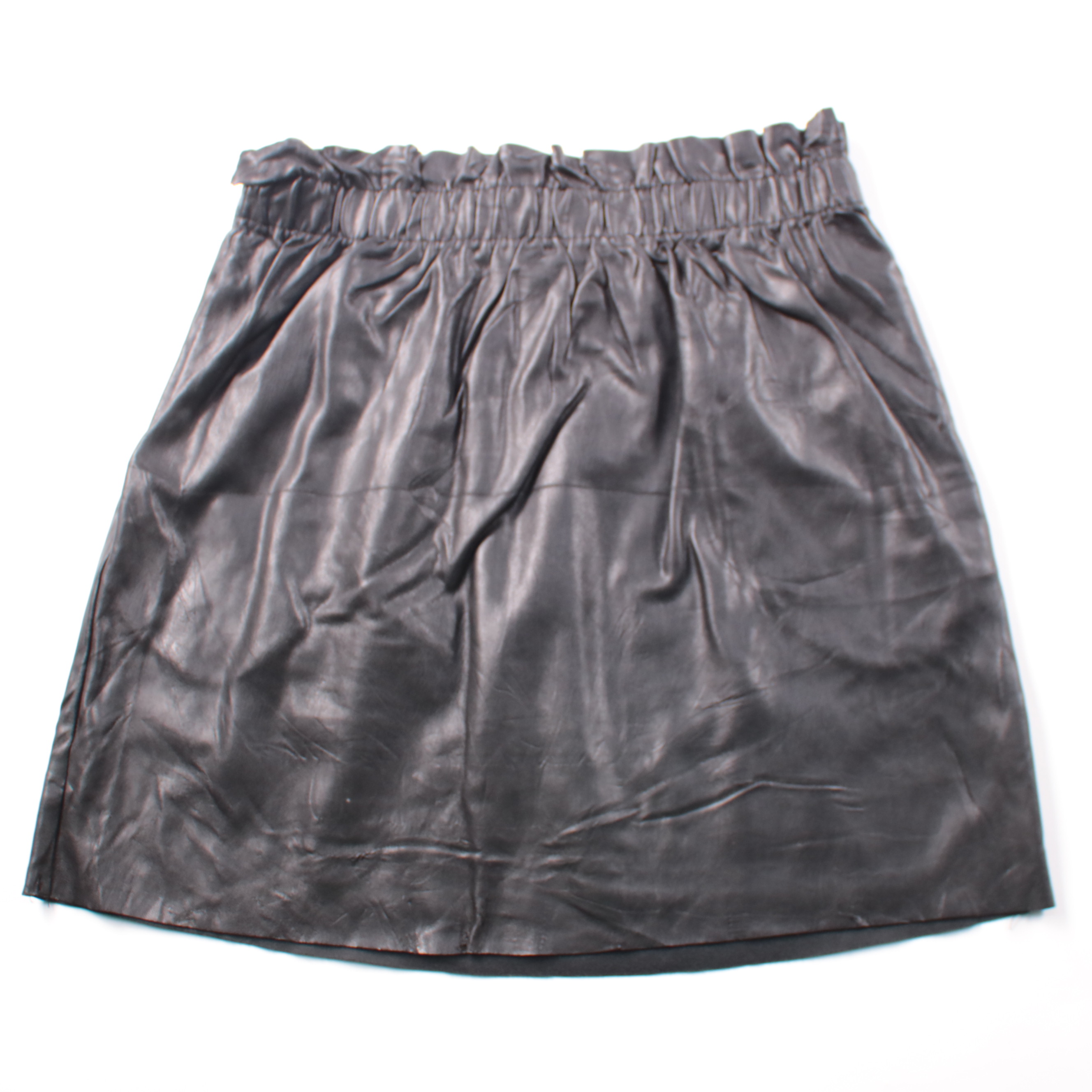 Женская юбка H&M из полиэстера с полиуретановым покрытием под кожу, с эластичной присборенной талией. Подойдёт для повседневных и вечерних образов в прохладное время года. Материал практичный и легко очищается, а посадка комфортная за счёт резинки.