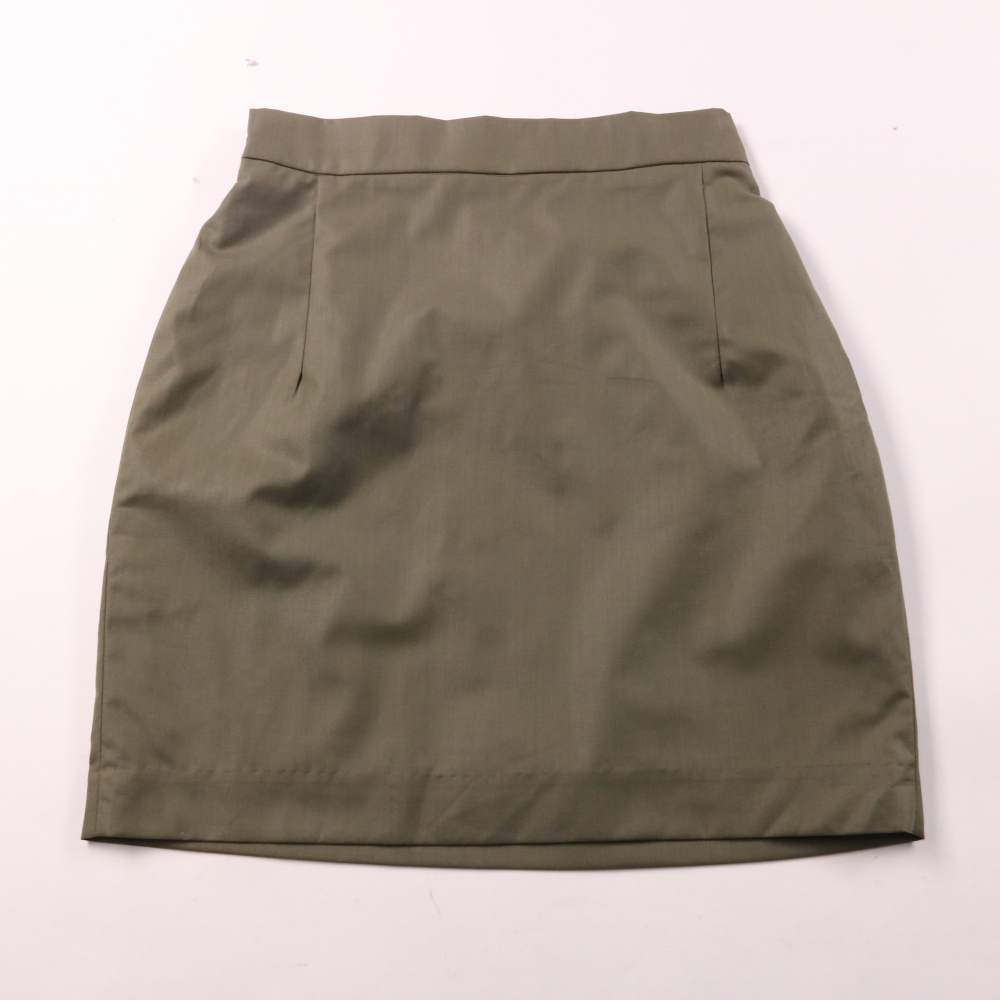 Женская юбка прямого силуэта в оттенке хаки, без выраженного декора. Подойдёт для повседневных и офисных образов с рубашкой или футболкой. Практичный плюс — универсальный цвет легко сочетается с базовой обувью и верхом.