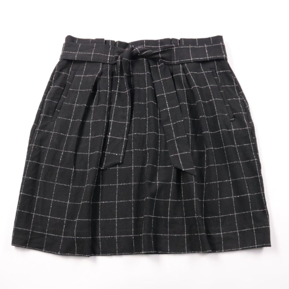 Юбка H&M чёрного цвета в белую клетку, с высокой посадкой и поясом-лентой. Подойдёт для офиса и на каждый день, легко сочетается с рубашкой или свитером. Пояс подчёркивает талию и помогает удобно регулировать посадку.