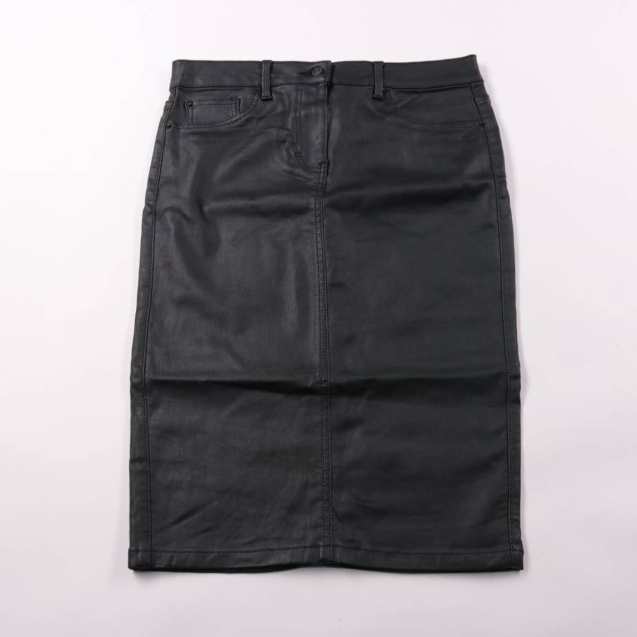 Юбка Next из эко-кожи чёрного цвета, прямого миди-кроя с разрезом сзади. Подойдёт для офиса и повседневных образов с рубашкой, водолазкой или свитером. Практичное преимущество — легко протирается и держит форму.