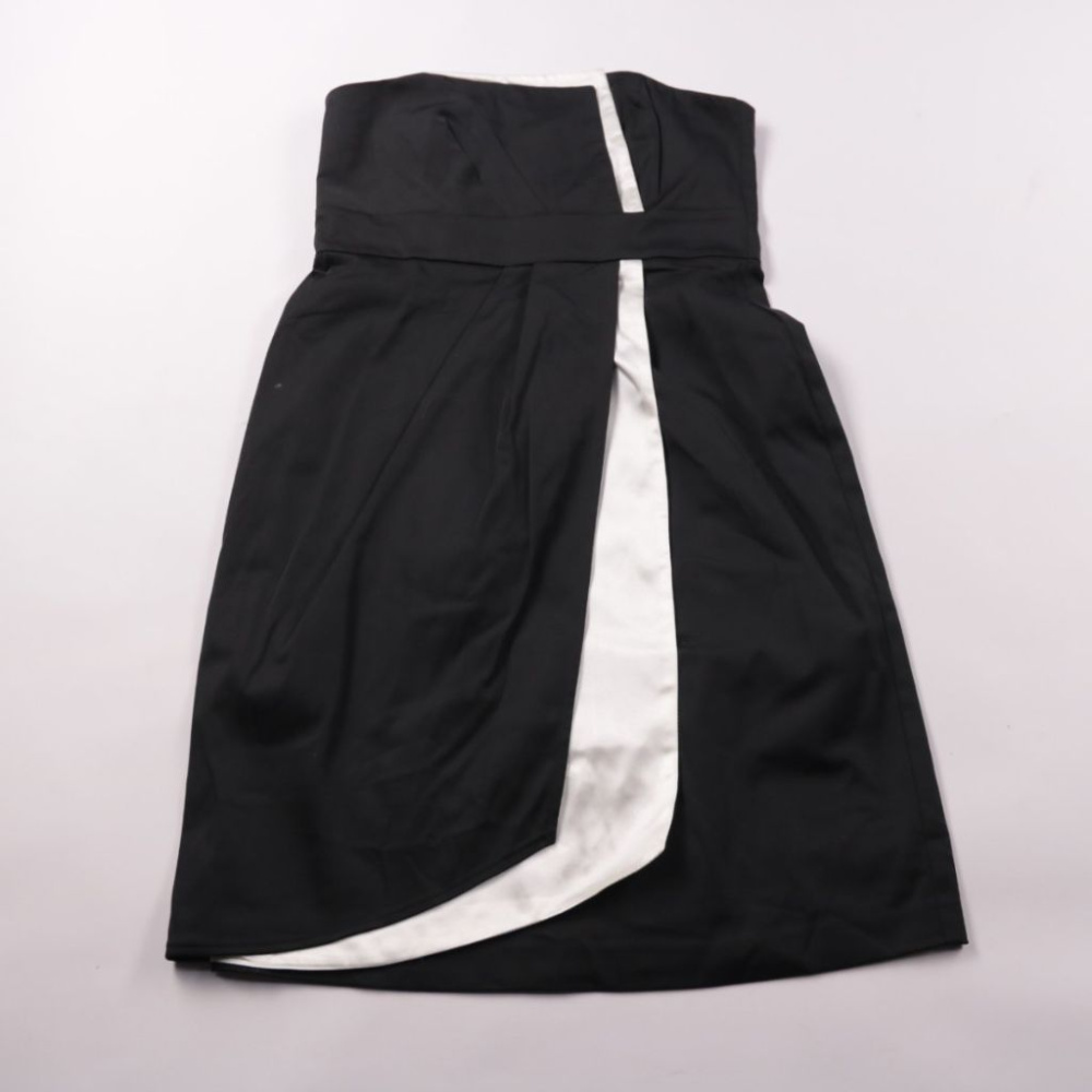 Женская юбка чёрного цвета с контрастной белой вставкой и асимметричным запахом. Подойдёт для офиса и повседневных образов, хорошо сочетается с базовыми топами и рубашками. Практичная ткань с добавлением эластана комфортно садится и почти не мнётся.