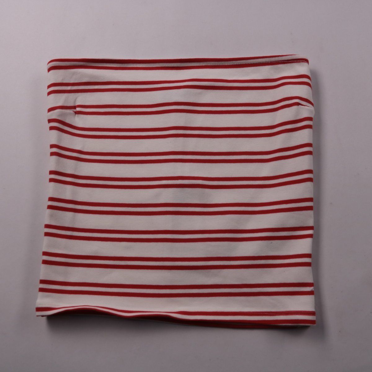 Юбка Gina Tricot из трикотажа в красно-белую полоску, модель прямого кроя (трубка) на эластичном поясе. Подойдёт для повседневных образов и летних прогулок, легко сочетается с базовыми топами и кедами. Тянущийся материал комфортно садится по фигуре и не сковывает движения.