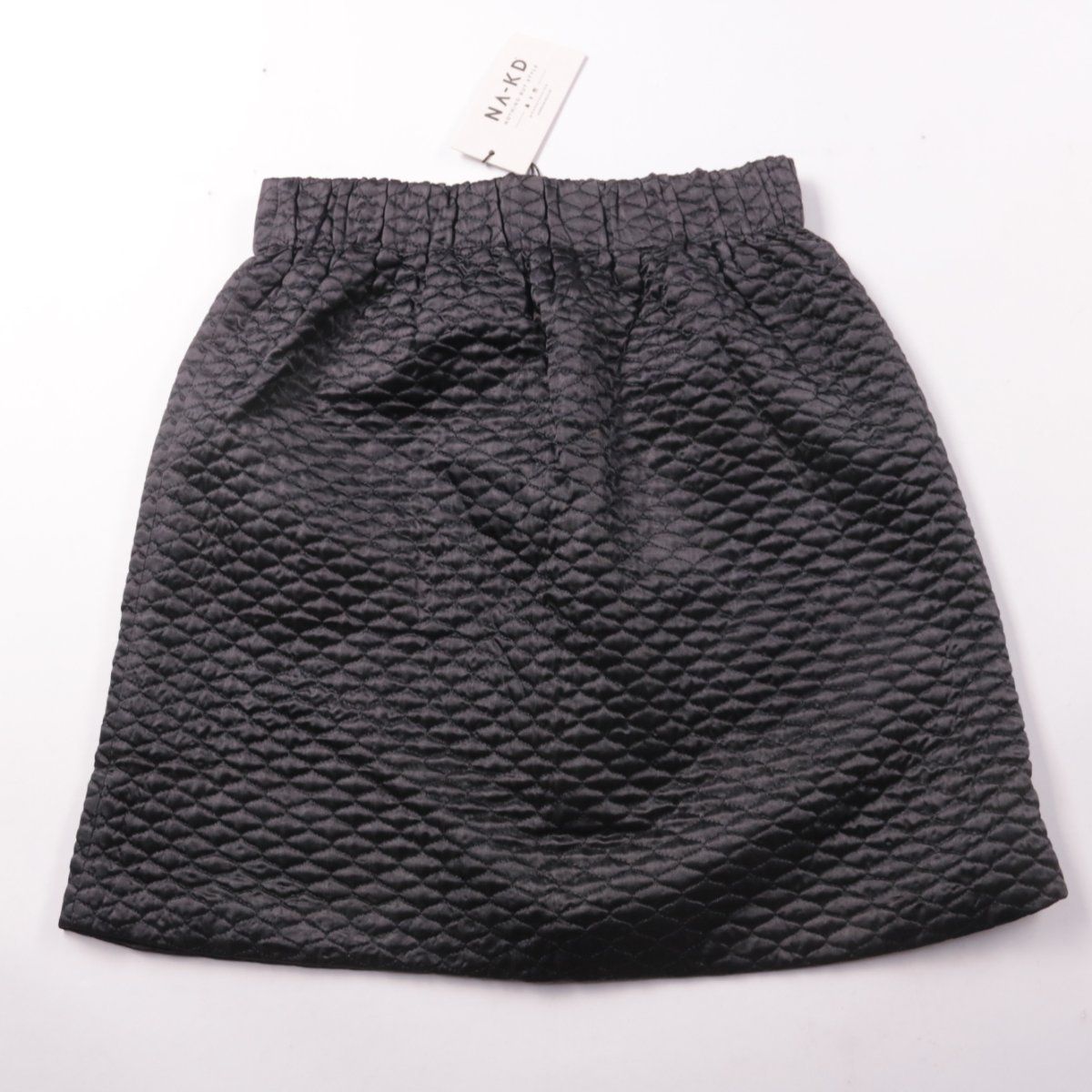 Стёганая мини-юбка NA-KD чёрного цвета с эластичным поясом. Подойдёт для повседневных образов в прохладную погоду с плотными колготками и ботинками. Материал из полиэстера практичен в уходе и быстро сохнет.