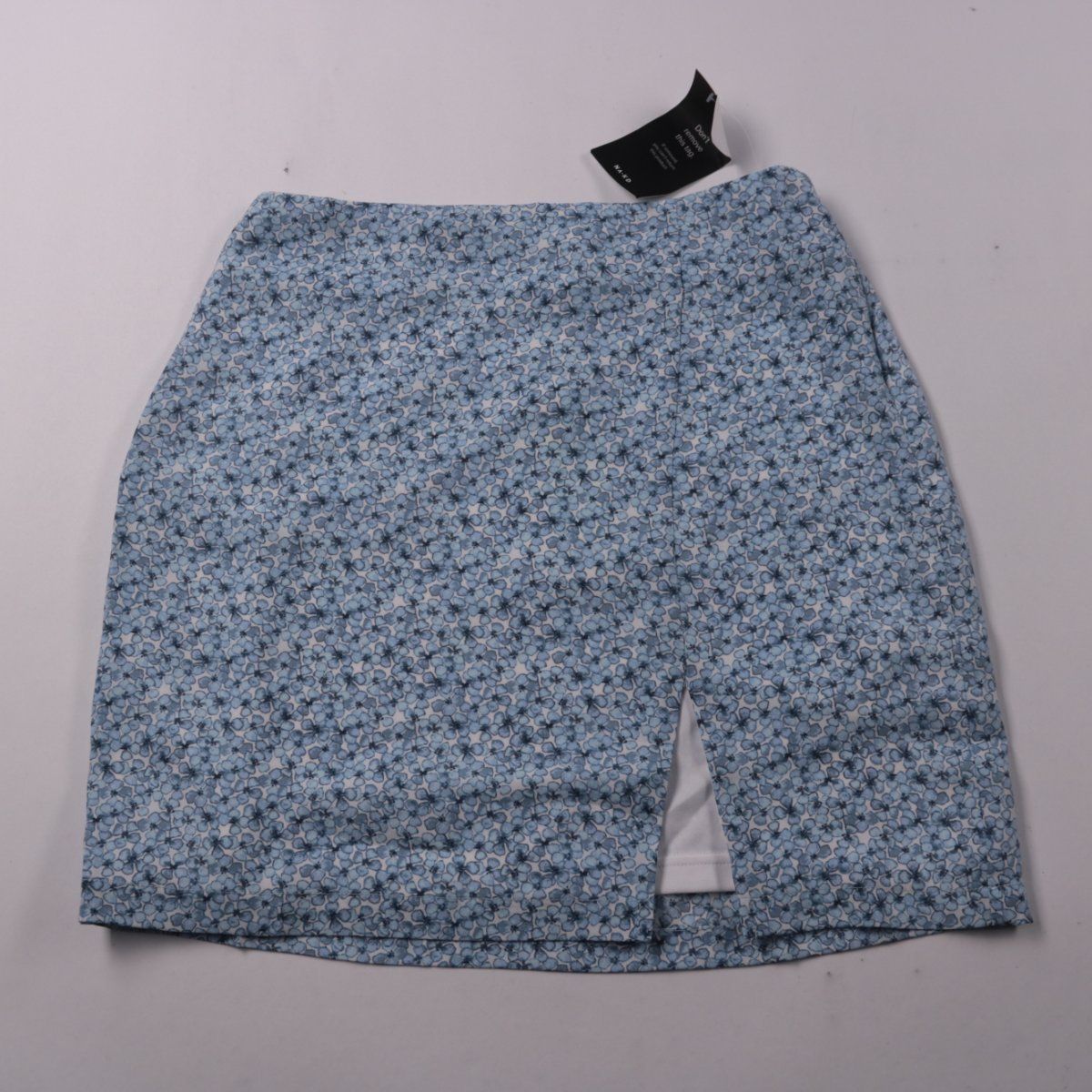 Юбка NA-KD с мелким цветочным принтом на голубом фоне и небольшим разрезом спереди. Подойдёт для летних прогулок и повседневных образов с футболками и топами. Материал из полиэстера практичен в уходе и быстро сохнет.