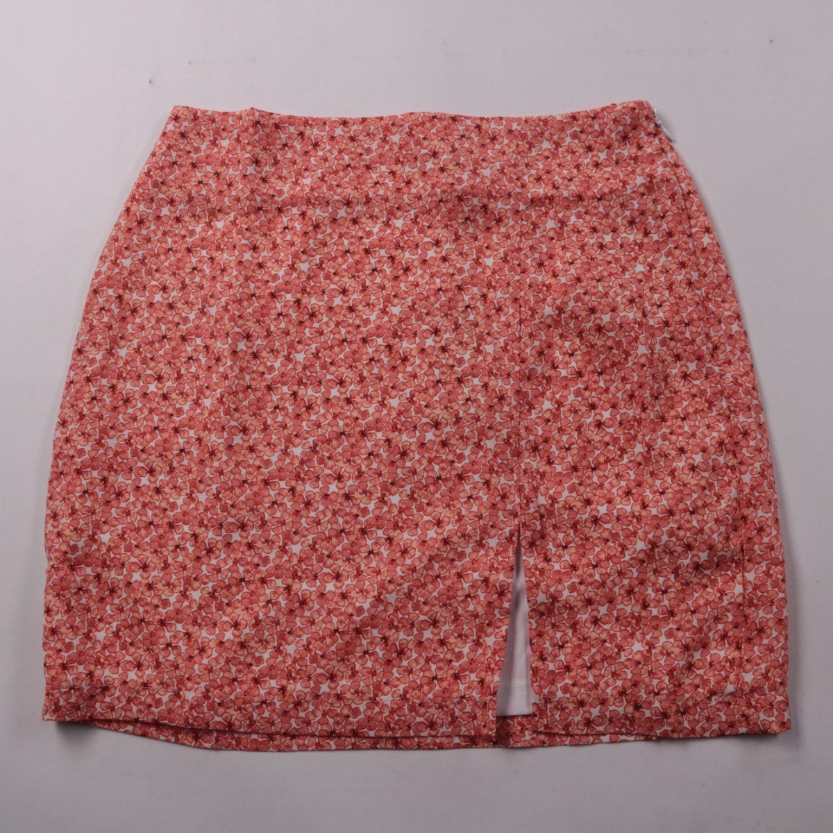 Юбка NA-KD в розово-коралловом цвете с мелким цветочным принтом и разрезом сзади. Подойдёт для летних прогулок и повседневных образов с топом или рубашкой. Лёгкий полиэстер быстро сохнет и прост в уходе.