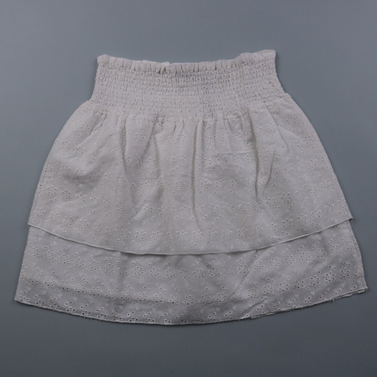 Юбка NA-KD белого цвета из хлопка с вышивкой ришелье и эластичным поясом-смокинг. Подойдёт для летних прогулок и отпуска, легко сочетается с базовыми топами и сандалиями. Резинка на талии обеспечивает удобную посадку и комфорт в течение дня.